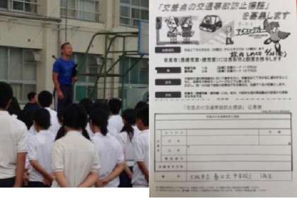 生徒会からは、「交差点の交通事故防止標語」の募集をしました。