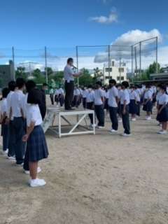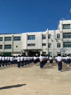 昨日は雨天だったため、本日全校集会がありました。「ルールの中で一生懸命やりきること」という校長先生のお話や、陸上部や空手の表彰がありました。