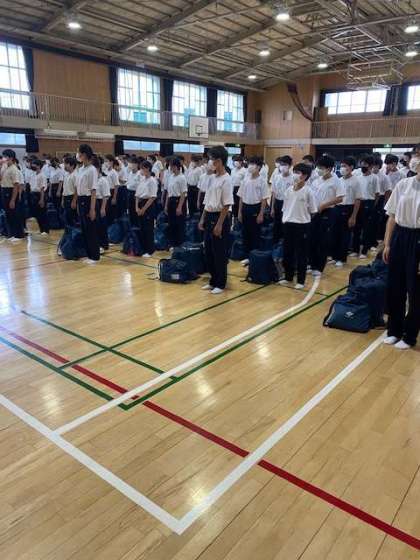 2年生一泊移住の様子です。無事出発いたしました。 iPhoneから送信