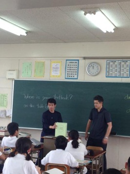 私は春日出中学校で月・火・水と全学年に英語を教えています。また、3つの小学校でも教えています。今まで2年間、此花区で教えてきました。私が小学校で教えた生徒たちが卒業し、その生徒たちが今この春日出中学校に通っています。その生徒たちが小学校で学んだことをどれくらいわかっているか、中学校への準備は出来ているかどうかを知ることは私にとってすばらしい機会だと思っています。小学校でよく勉強してきた生徒たちは中学校でもしっかり勉強し続けています。私は英語というものはなるべく早く学ぶ必要があり、通常の教科課程の一部であるべきだと思っております。