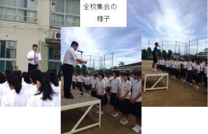 1学期最後の全校集会でした。校長先生から、岩手県で起こった悲しいいじめ事件についての報告があり、「何かあれば、必ず本人またはまわりの人も、かならず大人に相談しなさい。」とお話がありました。