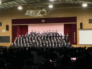 春日出中学校の文化祭が始まりました。プログラム1番は1年生の合唱です。曲はマイバラードです。男女の素晴らしいハーモニーと、1年生らしい元気いっぱいの合唱です。