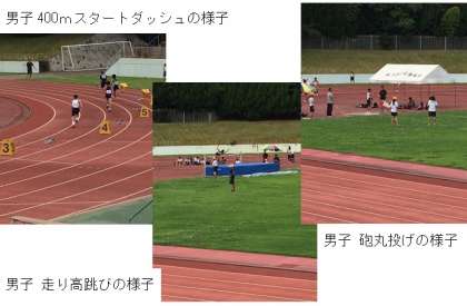 甘利颯太(2年1組)走り高跳び3位・小川顕人(3年2組)3段跳び5位・嘉津翔太(3年3組)砲丸投6位