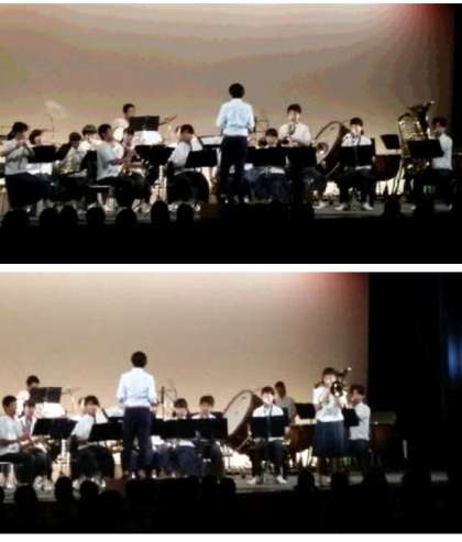 先日行われた吹奏楽コンクールで演奏した曲の雰囲気とは違った、「Let’s Swing」 と「虹の彼方に」 そして「銀河鉄道999」のリズミカルな曲や少し大人っぽい曲を演奏しました。