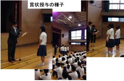 また、「海の絵画コンクール」で3年生の澤本さんの入賞とバドミントン部がブロック大会で得た数多くの賞状の授与がありました。おめでとう!