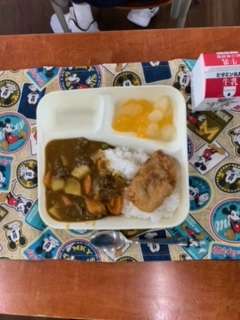 今年度、初めての給食はカツカレーでした。フルーツゼリーもついていて、午後からの授業も元気が出せそうなメニューで、おかわりもたくさんしていました!明日からも、協力して配膳し、おいしくいただきましょう!