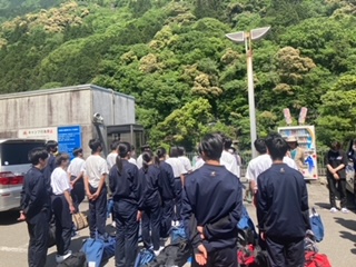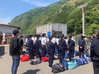 1組の入村式の様子です。1組は大歩危(おおぼけ)というところで入村式をしました。気になる人は、大歩危という地名の由来を調べてみてください!