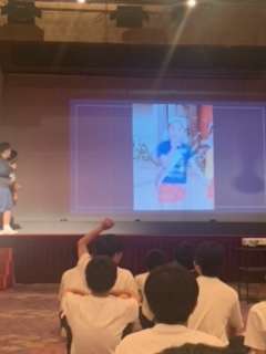 私は誰でしょう?をしています。皆の幼少期の写真を見て、誰なのかを当てるゲームです。