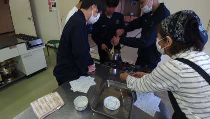 伯太の塩で有名な伯太島で塩キャラメルを作る体験です。美味しくできるかはチームワークが大事みたいです。美味しそうな匂いがしてきましたよ。