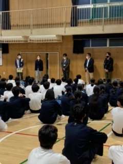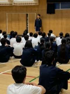 学校に到着しました。体育館で解散式を行なったあと、クラスごとに学活をして解散します。天気にも恵まれた良い修学旅行だったと思います。疲れていると思いますので、休日はしっかりと休んでください。
