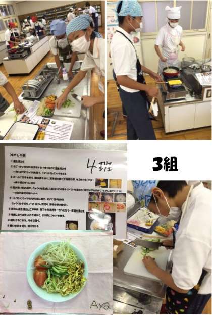 15日(火)は1組、16日(水)2組、17日(木)3組で「冷やし中華」を作りました。1時間で大忙しでしたが、生徒たちは、各班で協力して取り組んでいました。(担当:取嶋)