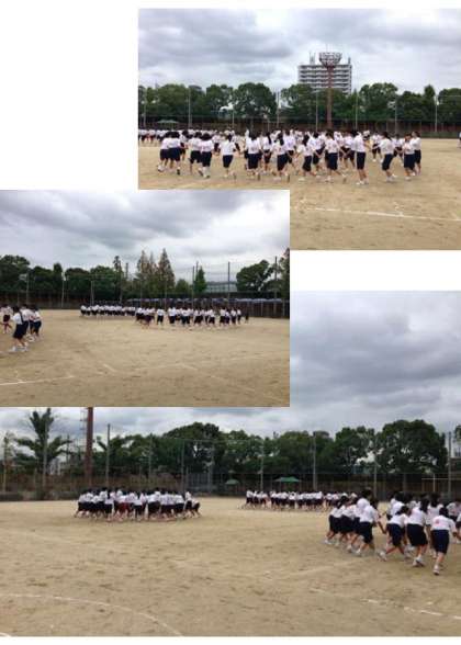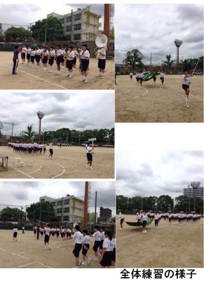 本日5時間目、3学年そろって来週水曜日に開催される体育大会の全体練習を行いました。吹奏楽部の演奏での入場行進、開会式、合同体操、閉会式等。