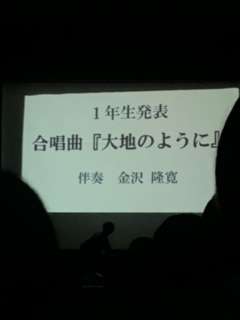 本日は文化祭です。生徒会によるオープニングのあと、一年生の合唱でした。学年の合唱コンクールで優勝したクラスが舞台に立ち、元気な合唱をしてくれました。学年全体での合唱は予定通りとはいきませんでしたが、自分たちでできることを考え、音声と映像で披露することができました。