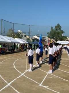 本日は第77回体育大会です。天気にも恵まれました。練習の成果を発揮して、全力で取り組んでください!