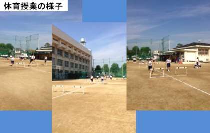 今日も清々しい青空です。体育の授業は陸上競技として、「ハードル走」、「走り高跳び」、「砲丸投」をグループ毎に分かれ、取り組んでいます。
