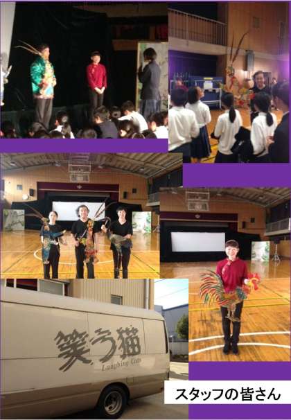 スクリーンに直接照明の光を照射し、人形を透かしだす技術や竹の棒による独特の操作方法は変幻自在な演技に、初めて見る生徒たちは舞台にくぎ付けになり、あっという間の80分間でした。