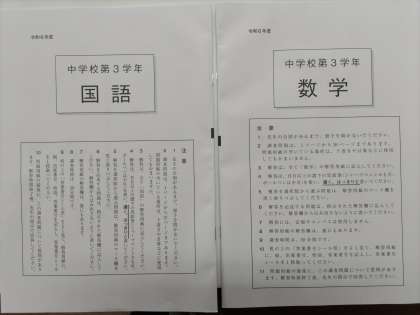 本日、1時間目から3年生が全国学力テスト(国語、数学)を受けています。