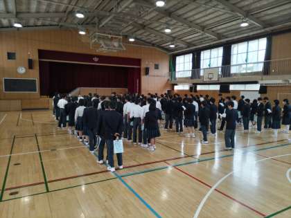 3年生は、来週からの修学旅行に向けて、しおりの読み合わせや班活動などに備えた集合練習を実施しました。