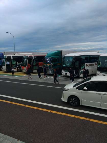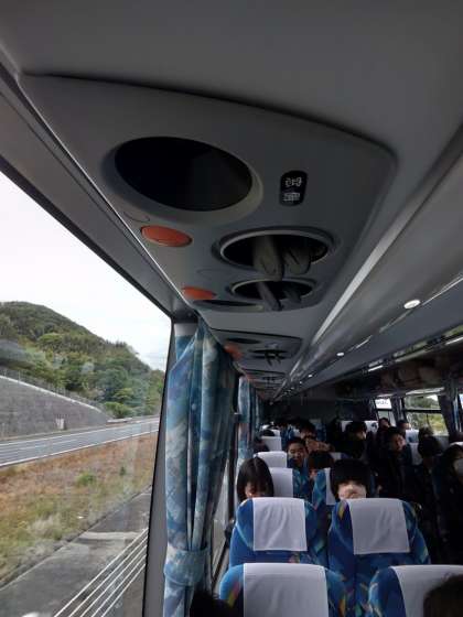 予定どおり、室津PAに着きました。バス内では各号車でレクを楽しんで盛り上がっています。