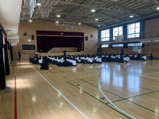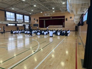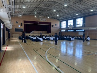 教頭先生、学年代表生徒のあいさつ、諸連絡をしました