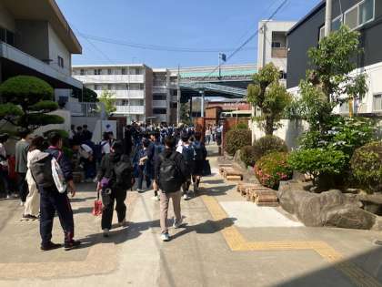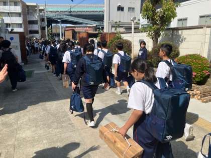 式を終え、バスに向かいます。