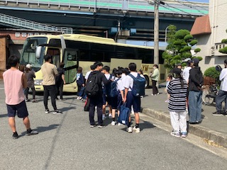 日曜日の朝早くにかかわらず、たくさんの保護者、ご家族、2・3年の先生がお見送りしてくださいました。お休みの中、ありがとうございました。