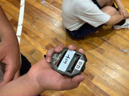 6人で協力して、1分を計ります。