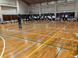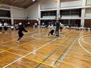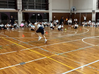 最後の種目、風船リレーです。うちわを使って風船を運びます。