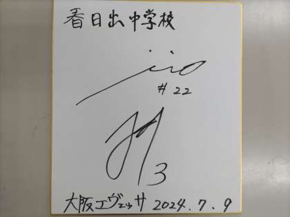 学校あてに、サインも書いて頂きました。ありがとうございました。