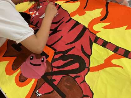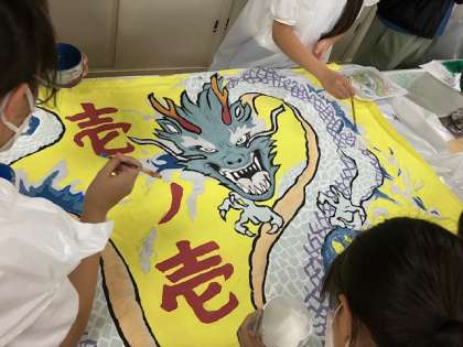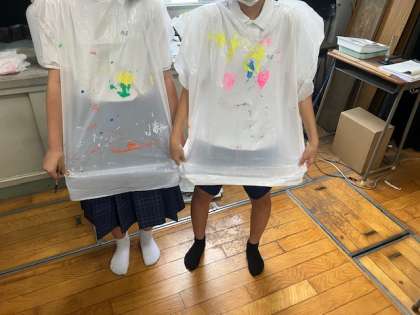 服が汚れないように大きなビニール袋をスモック代わりにしています。