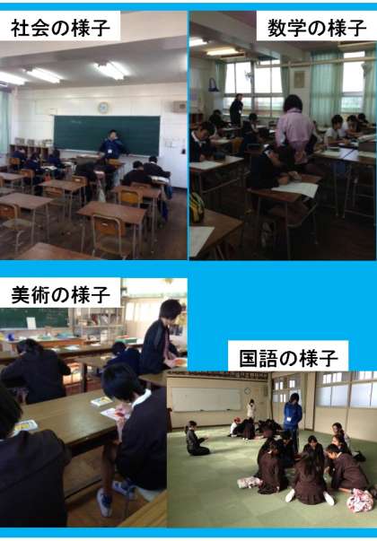 2学期期末テストも終わり、午後から連携3小学校の6年生をむかえ、中学校生活の一部を模擬体験してもらいました。