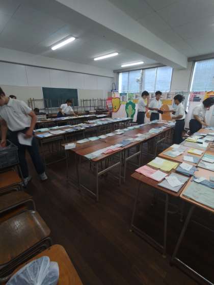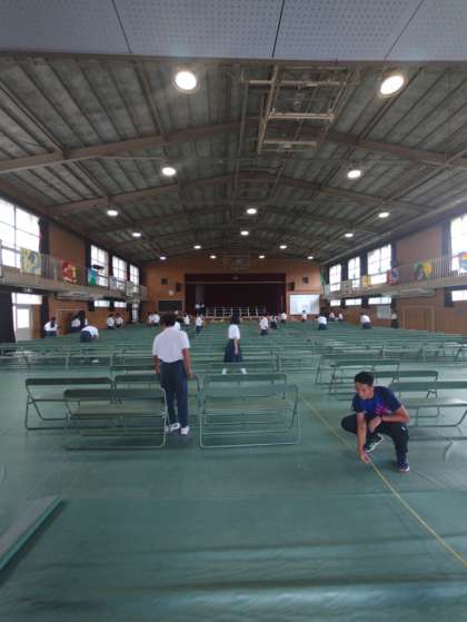 給食後、明日の文化祭の準備です。展示や舞台発表のために多くの生徒がかかわって準備をしてくれています。きっと、思い出に残る文化祭になると思います。
