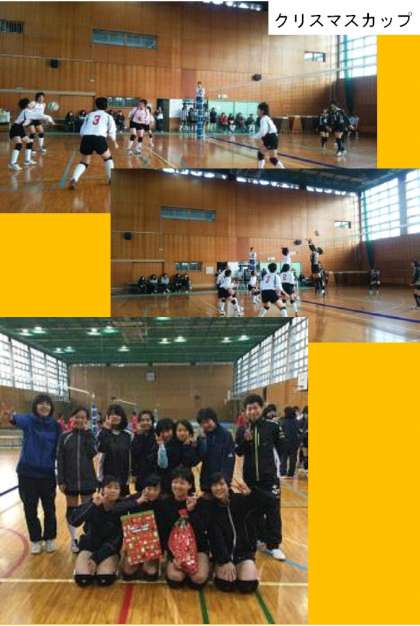 今回は9校が集まり、午前中に抽選したグループでリーグ戦を行い、その順位順に振り分けたグループで午後からの試合を行いました。結果は5位となりましたが、それぞれの顧問が用意したクリスマスプレゼントを順位順で選んでいき、春日出中学校は去年に引き続きラダーをいただきました。今後の練習で活用していこうと思います。(写真:下)