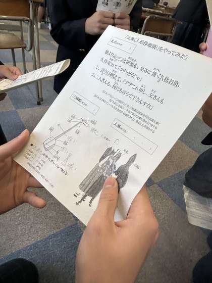 音楽科2年生の授業では文楽「新版歌祭文-野崎村の段-」を学習しています。