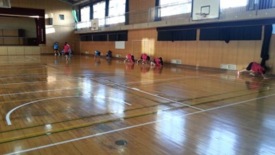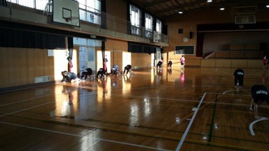 体育館の全面を何度も往復しての雑巾がけは、大変ですが、とっても良いトレーニングにもなります。