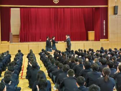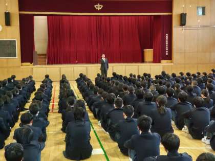 また、生徒会からは「生活指導週間」の取り組みについての話がありました。冬休み明けで厳しい寒さが続く時期ですが、朝の登校から再度良い生活習慣を身につけるようにしようという意識を高める週間です。全生徒で良いスタートをきれるようにしましょう。