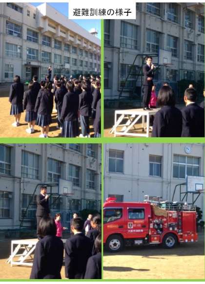 2時間通常授業を行った後、避難訓練を行いました。区役所、消防署の皆様にもお手伝いをいただき、火災発生を想定しての避難訓練です。「避難開始」の号令から整列完了までの時間は3分14秒。ご覧に来ていただいた区長さんや消防署長さんからもお褒めのお言葉をいただきました。