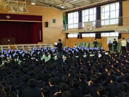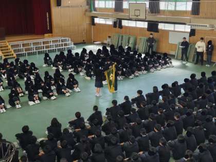 1,2年生からは今までの感謝を、3年生は春日出中を託す思いを、それぞれ代表生徒の言葉と全体の合唱で伝え合いました。