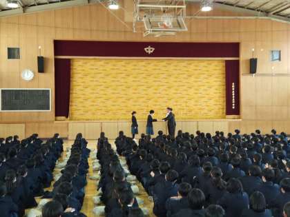 学年代表生徒に修了証が手渡され、新年度へ向けての講話が校長先生よりありました。