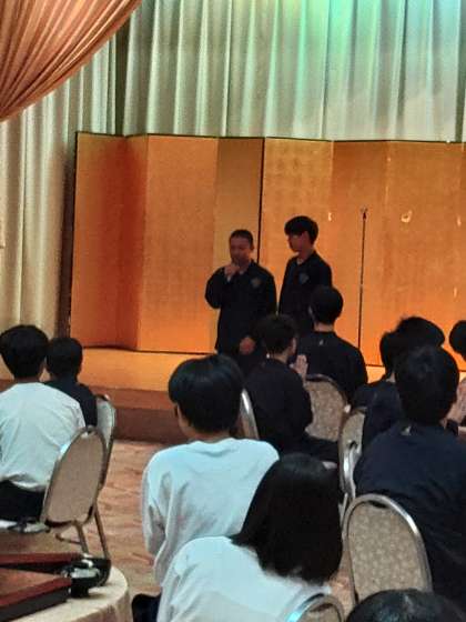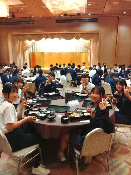 おはようございます。起きてからすぐの朝食ですがもりもり食べています。最終日の活動も楽しみにしてわいわいとして元気にしています。