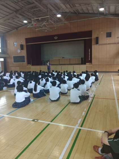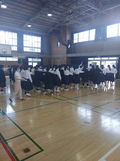 体育館で学年集会で、もうすぐある中間テストの受け方についての話がありました。定期テストは、はじめての事なのでしっかりと話しを聞いて準備を怠らないようにすれば当日焦ることなく平常心で受けれますよね。残りの時間はいよいよ来週に迫ってきた一泊移住での隊形の練習と諸連絡がありました。