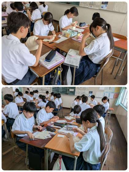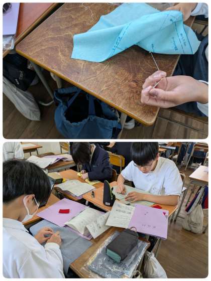 1年生は刺し子を、2年生ではボタン付けを行いました。