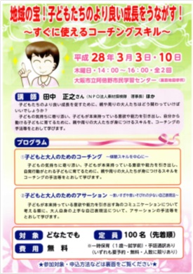 大阪市教育委員会より、講座の案内が届いています。ご紹介します。