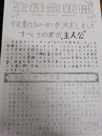 最後に生徒会から、今年度のスローガンの発表がありました。