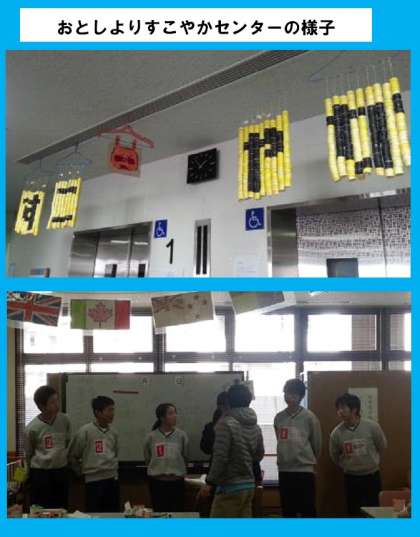 利用者のみなさんに自己紹介をしています。このあと、みなさんと一緒に、おてだまや折り紙などをします。