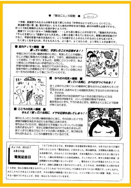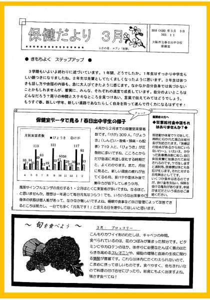保健だより3月号が昨日生徒に配布しました。 (担当:小倉)