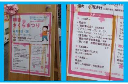 また、4月3日の日曜日は梅香東公園で開催されるさくらまつりにも出演します。(顧問:川本、奥田、豊田)