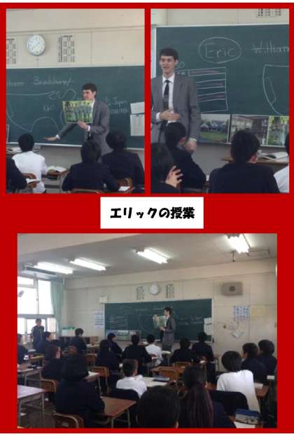 今日は3年生の授業で、初めの時間はエリック先生の自己紹介です。これで、全学年1回目の授業が終わりました。