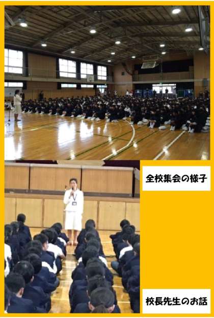 月曜日は全校集会です。あいにくの天候で体育館で行いました。