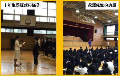 校長先生のお話(最後に掲載しています)、1年生認証式がありました。3学年とも学級での委員が決まり、永澤先生から各委員が決まったが、人任せにしないで学校生活を送るようにとのお話がありました。